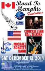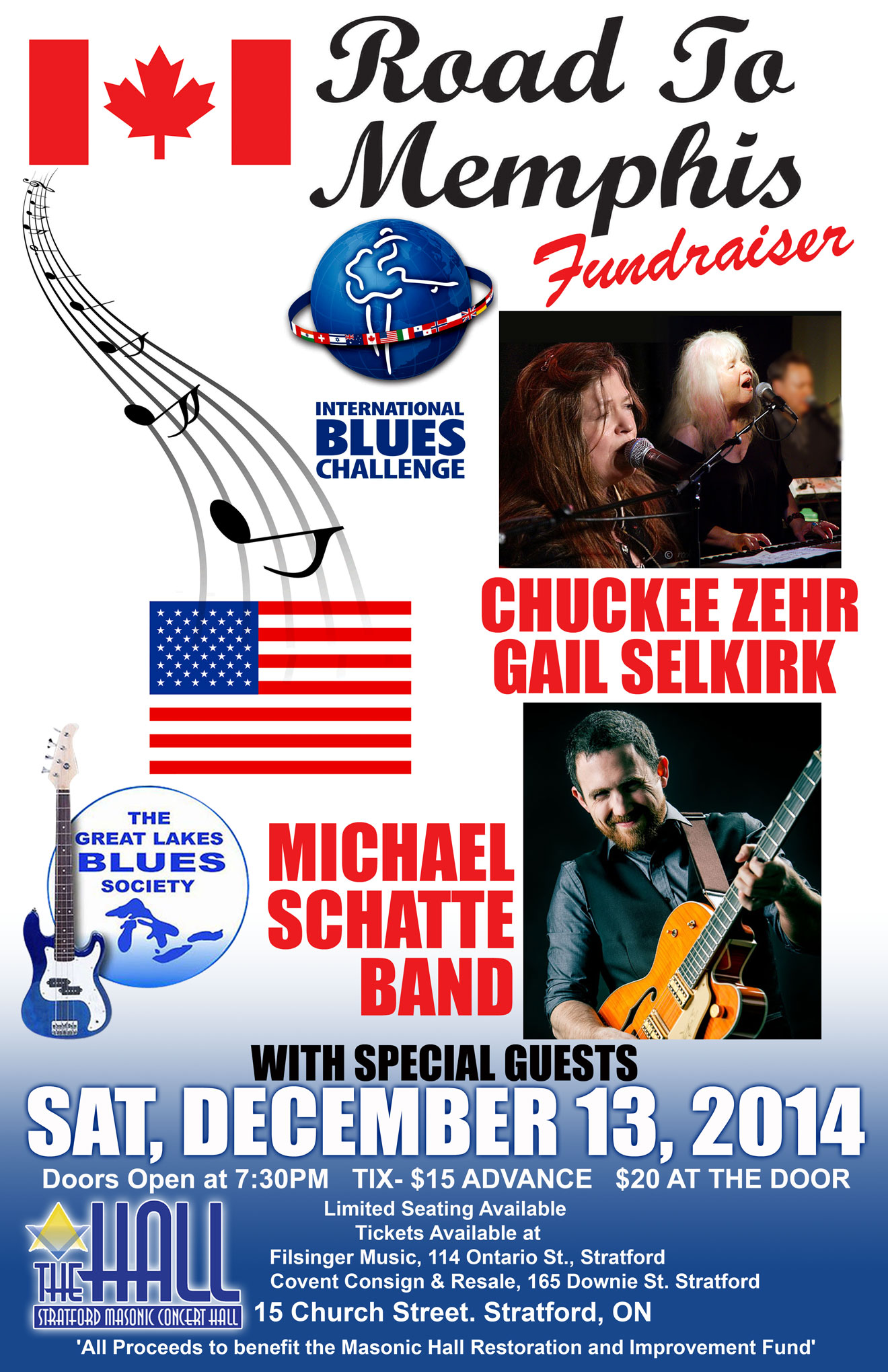 The Michael Schatte Band will perform at the Stratford Masonic Concert Hall on Saturday, December 13th to raise funds toward their trip to Memphis in January. Also performing are The Katfight Keys (Chuckee Zehr and Gail Selkirk) who will be competing in Memphis in the duo category, as well as some special guests.